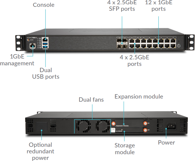 The NSA 2650 delivers high-speed threat prevention over thousands of encrypted and even more unencrypted connections to mid-sized organizations and distributed enterprises.
